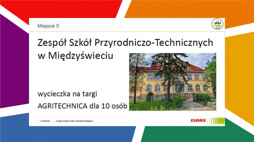 W nagrodę 9 uczniów z najlepszymi wynikami otrzymało zaproszenie na wyjątkową wycieczkę do Niemiec, podczas której zwiedzą m.in. fabrykę kombajnów CLAAS, odwiedzą targi AGRITECHNICA 2025 – największe targi techniki rolniczej w Europie – oraz wezmą udział w wielu innych atrakcjach.