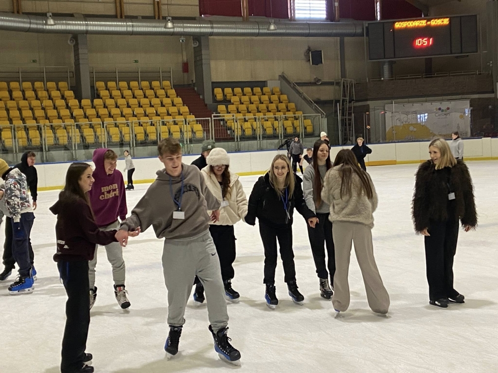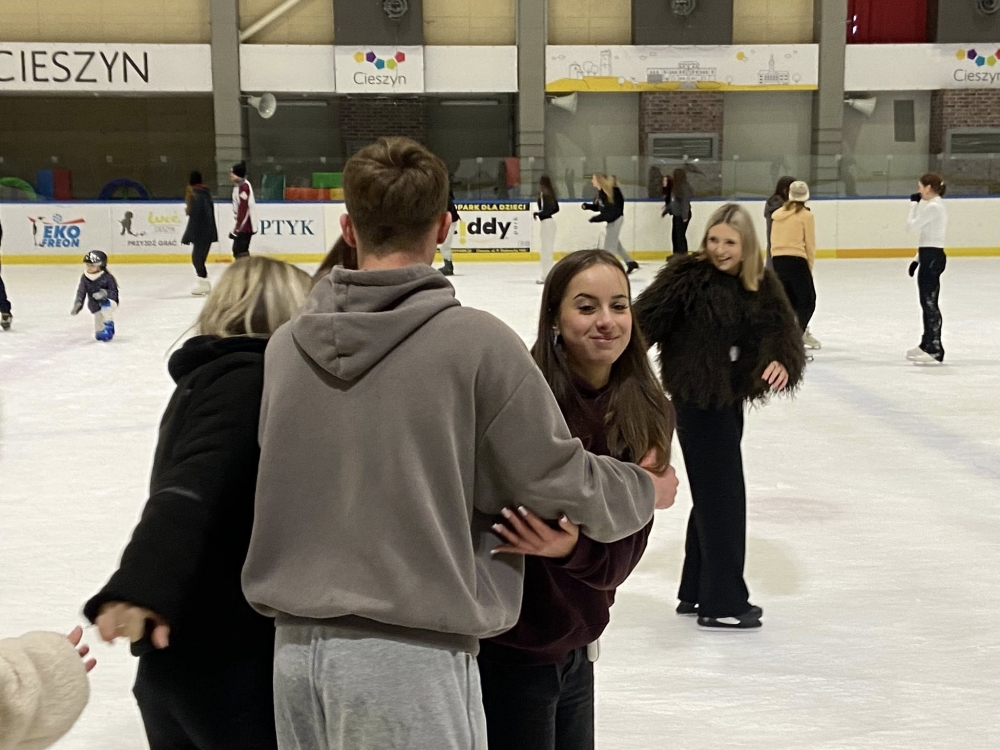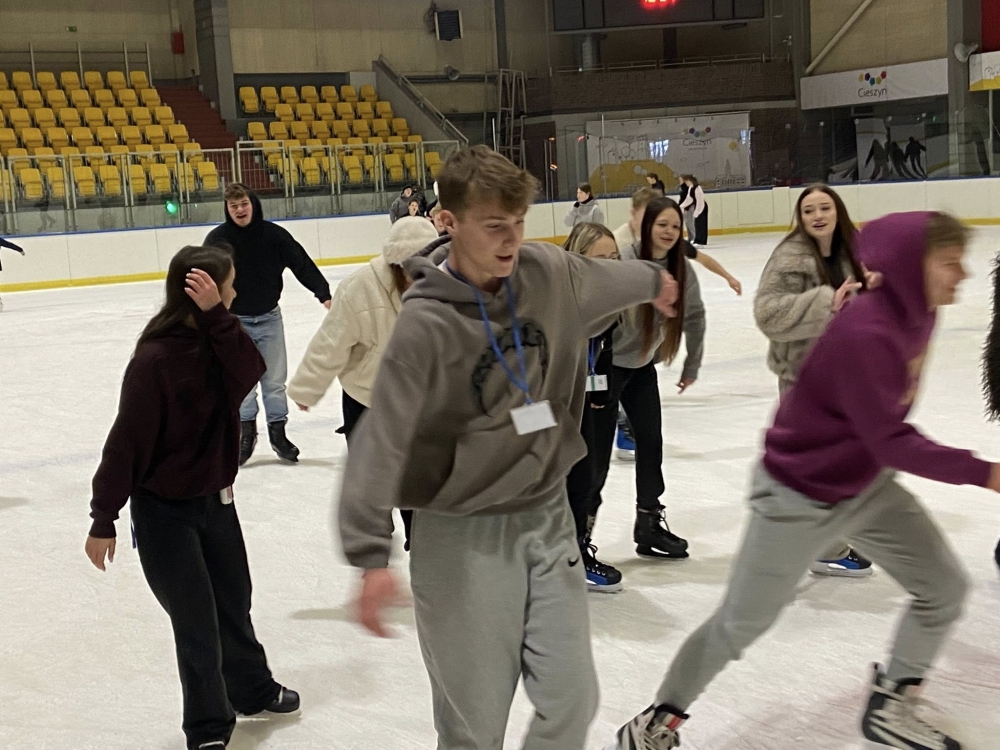 „Samotni w tłumie” - to profilaktyczny spektakl teatralny przygotowany przez Narodowy Teatr Edukacji z Wrocławia. 10 lutego 2026r. obejrzeli go na scenie DN w Cieszynie uczniowie klas 3TAL, 3TRZ, 4 TW oraz 4 TRZ ZSP-T. Po przedstawieniu młodzież kontynuowała wycieczkę profilaktyczną na tafli cieszyńskiego lodowiska.
