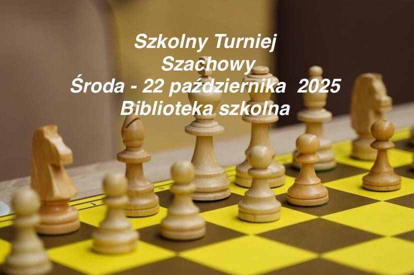 W Bibliotece szkolnej 22 pażdziernika 2025r. zorganizowano Szkolny Turniej Szachowy. Szachowym istrzem szkoły został Mikołaj Mięciel, II miejsce zajął Łukasz Danel, a III Bartosz Kurek. Wszyscy szachiści są uczniami klas pierwszych i mamy nadzieję, że rozwiną swoje szachowe skrzydła w naszej szkole!